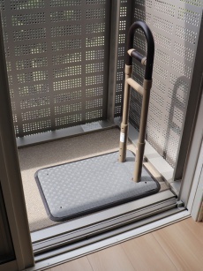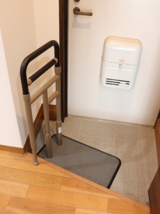玄関ポーチや勝手口などで、段違い形状の手すりで、安全なお出かけをサポートする手すり『BS桜』