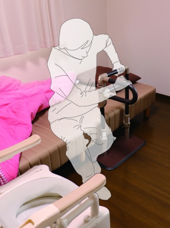 こちらは、今春3月★新発売★の置き型手すり「BSモア」シリーズの新しいオプション品『アシストバー』です。『アシストバー』は、玄関や廊下、居室などあなたの生活動線をサポートする当社人気の『BSモアシリーズ』の手すりに取り付けて、ベッドサイドでの立ち上がり、移乗補助、座位の保持などに使用できます。